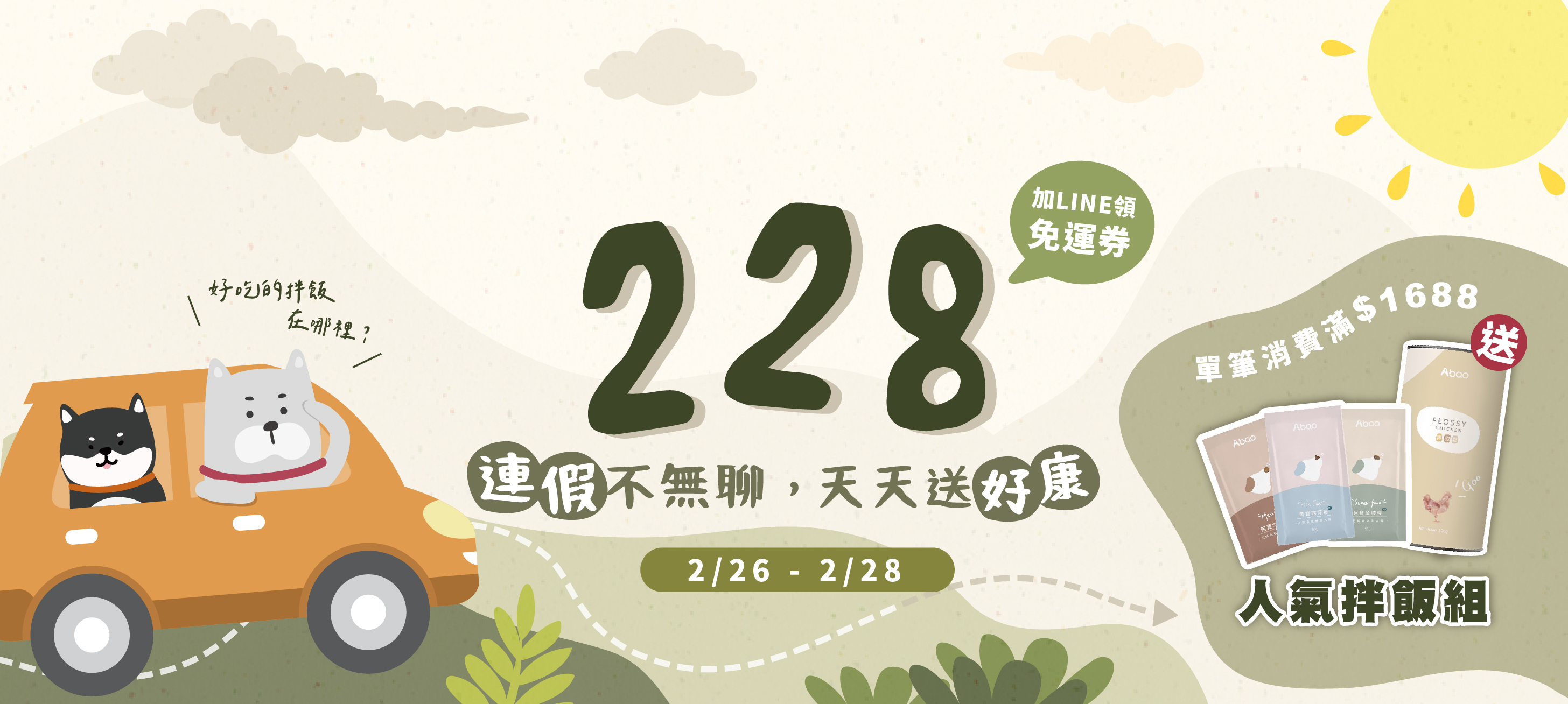 活動內容:全館滿$228 輸入專屬免運碼享免運