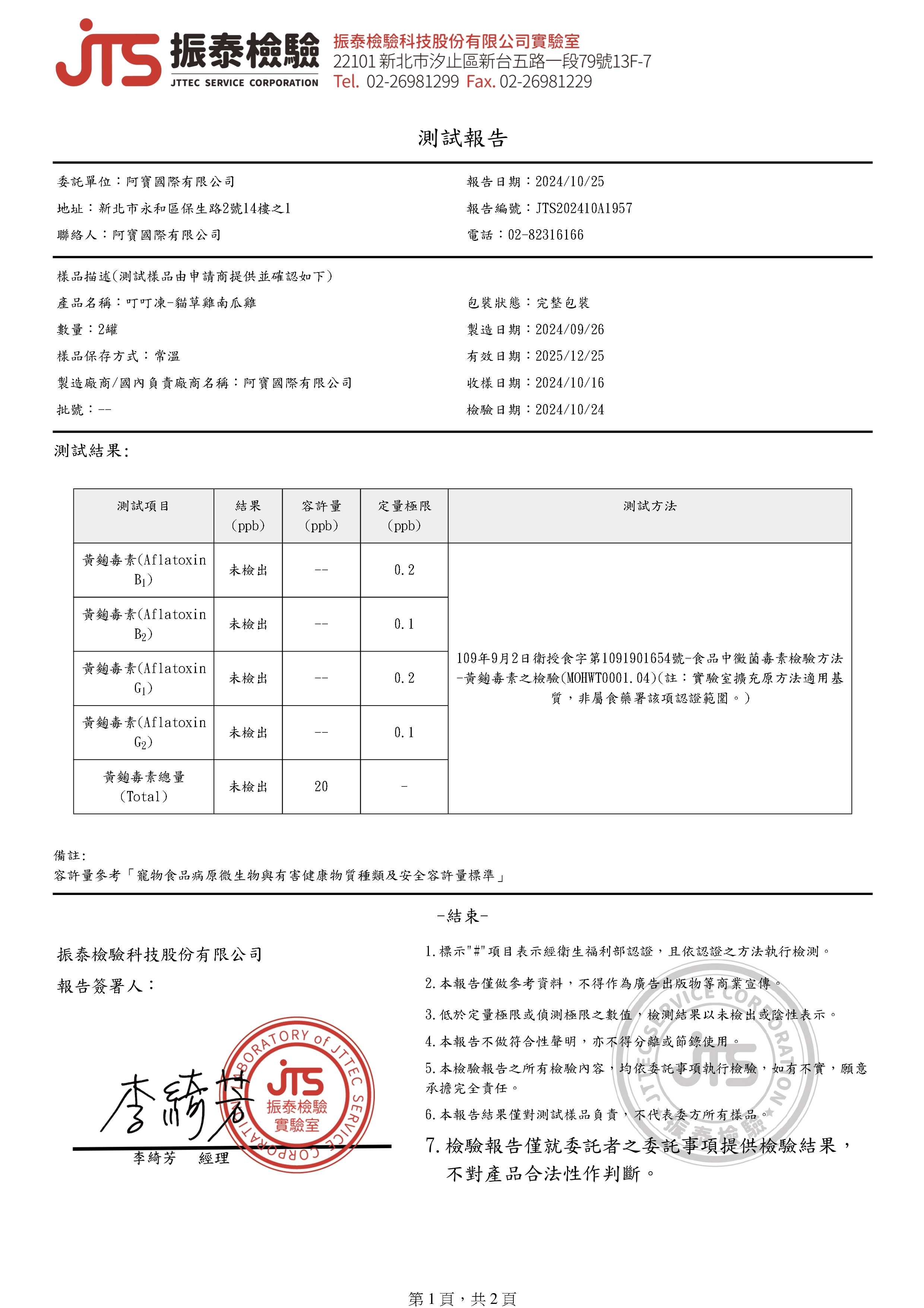 --沙門氏桿菌、大腸桿菌、重金屬、黃麴毒素皆0檢出--