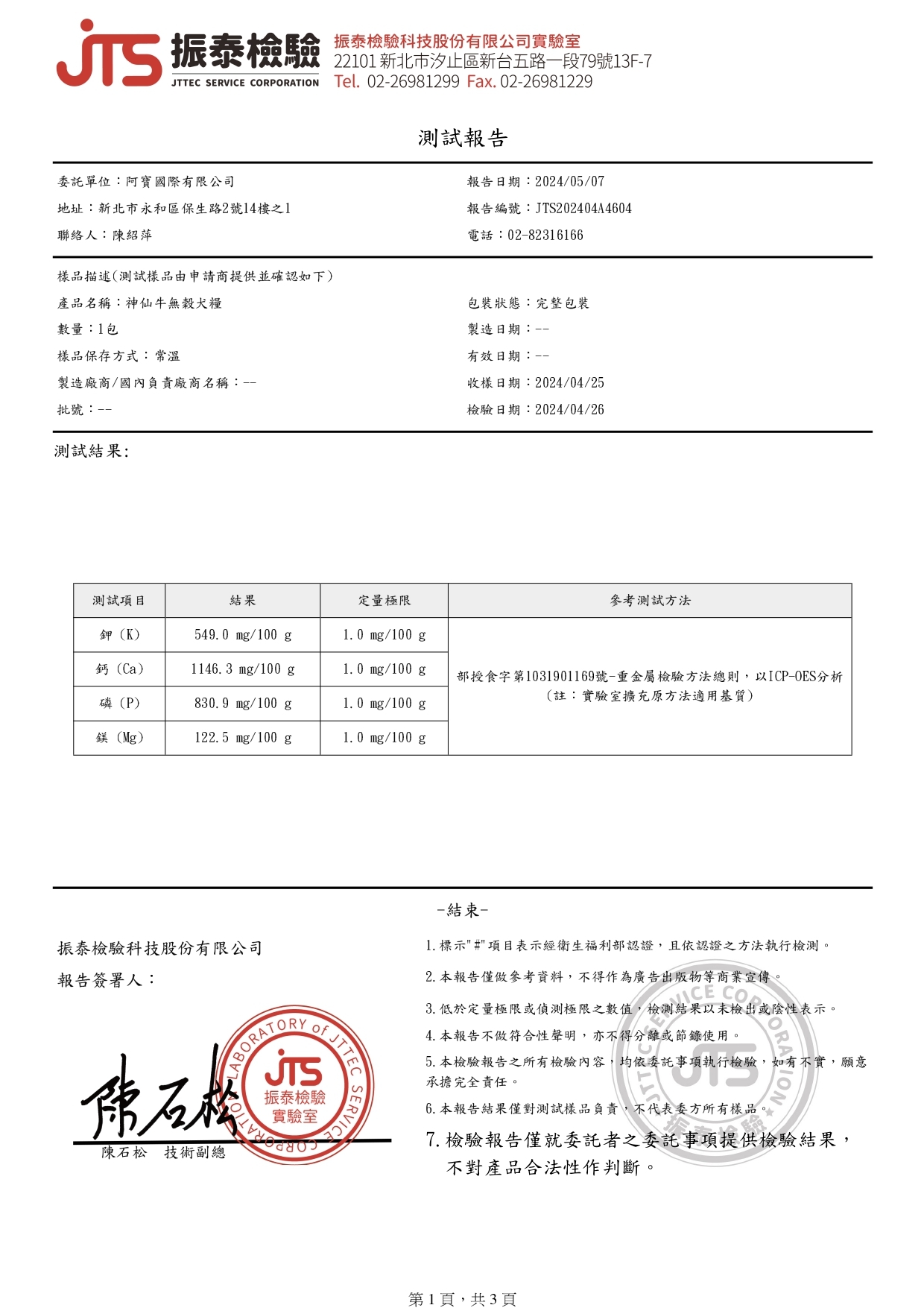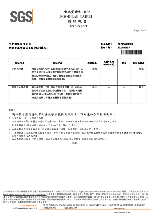 --黃麴毒素、大腸桿菌、沙門氏菌、農藥皆0檢出--