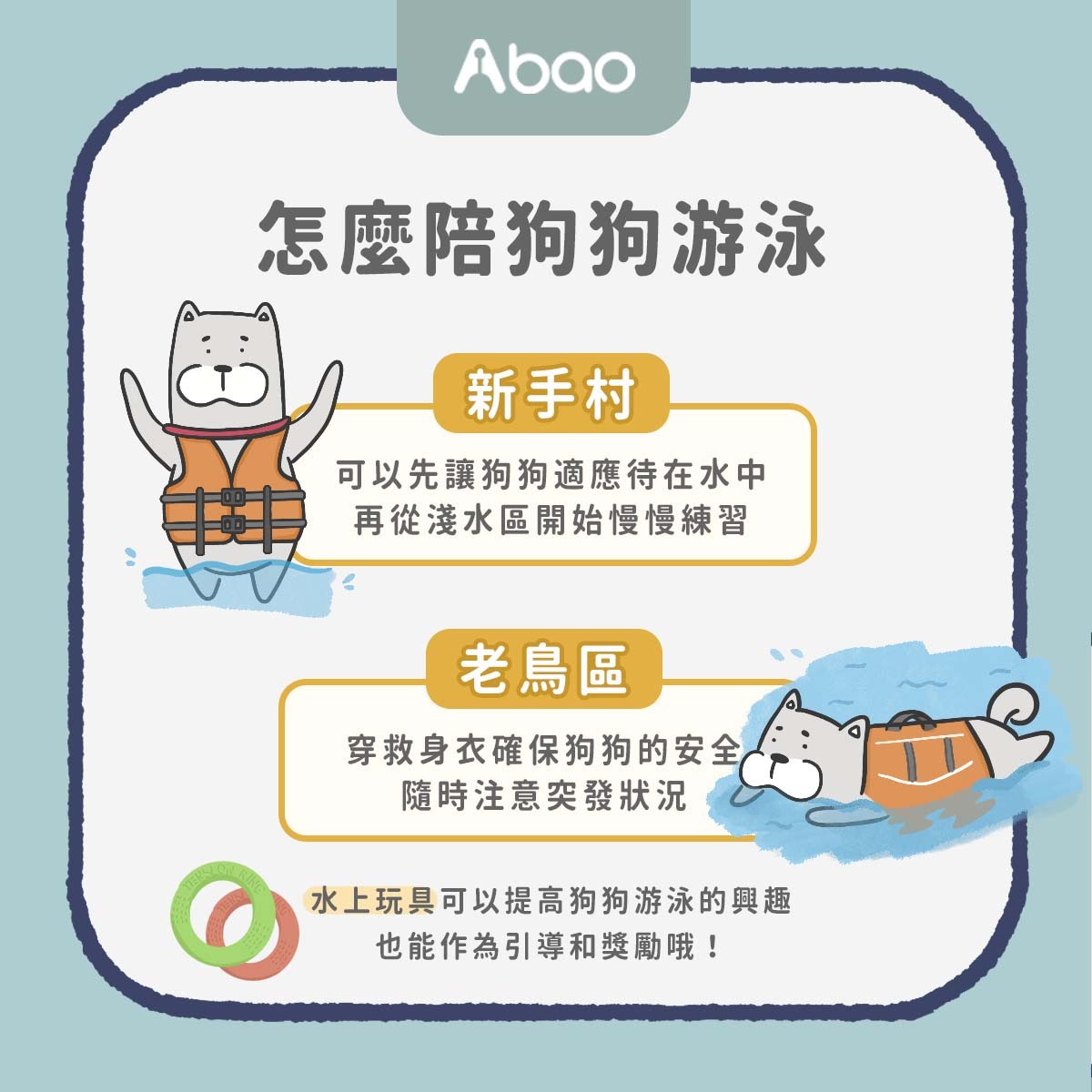 新手村:可以先讓狗狗適應待在水中,再從淺水區慢慢開始練習