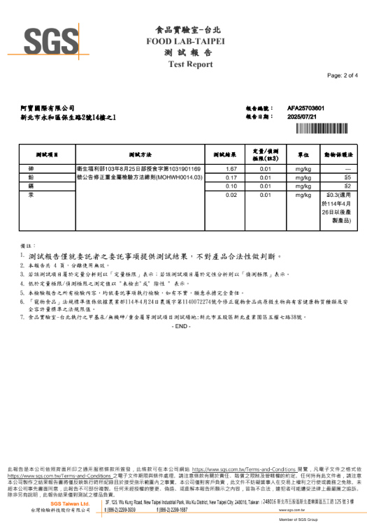 --黃麴毒素、大腸桿菌、沙門氏菌、農藥皆0檢出--