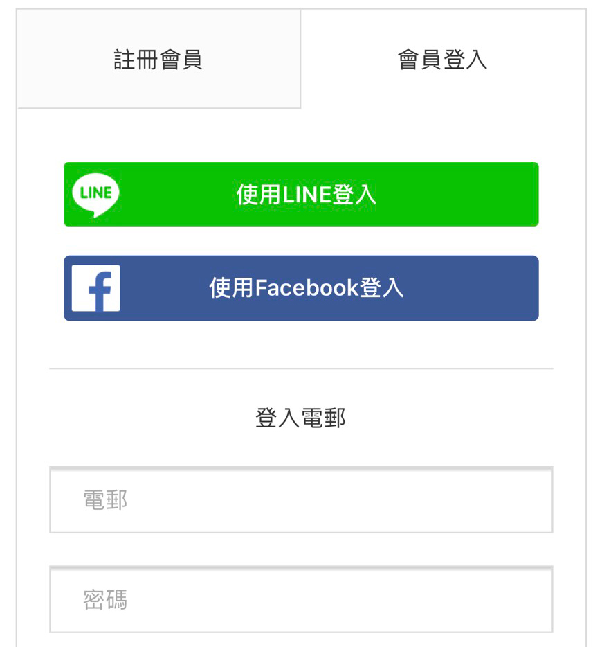 用Mail登入或是其它社群(FB登入 / LINE登入)