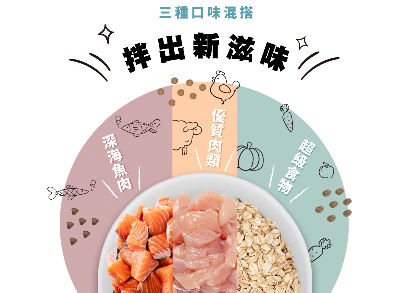 讓狗狗可以在多元的食材內達到營養均衡的效果。