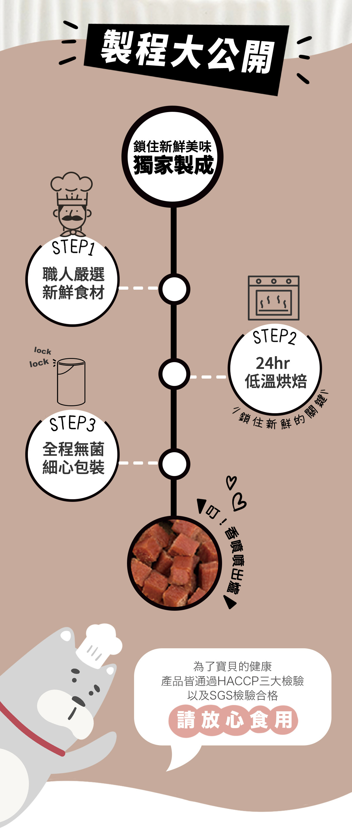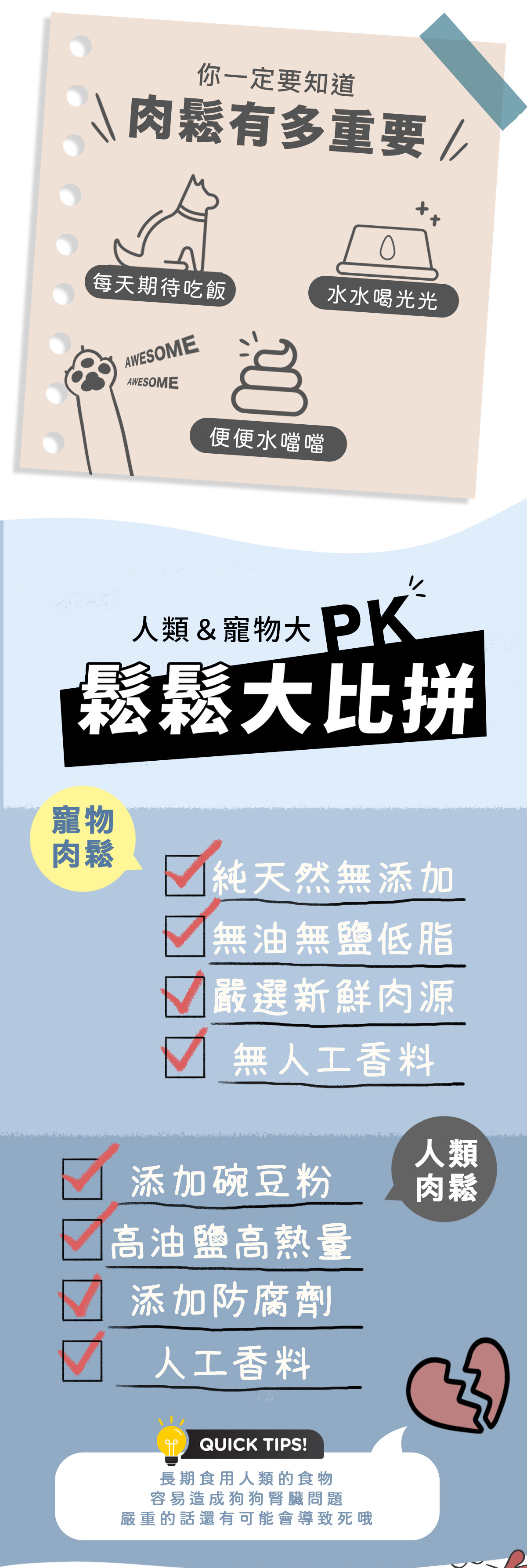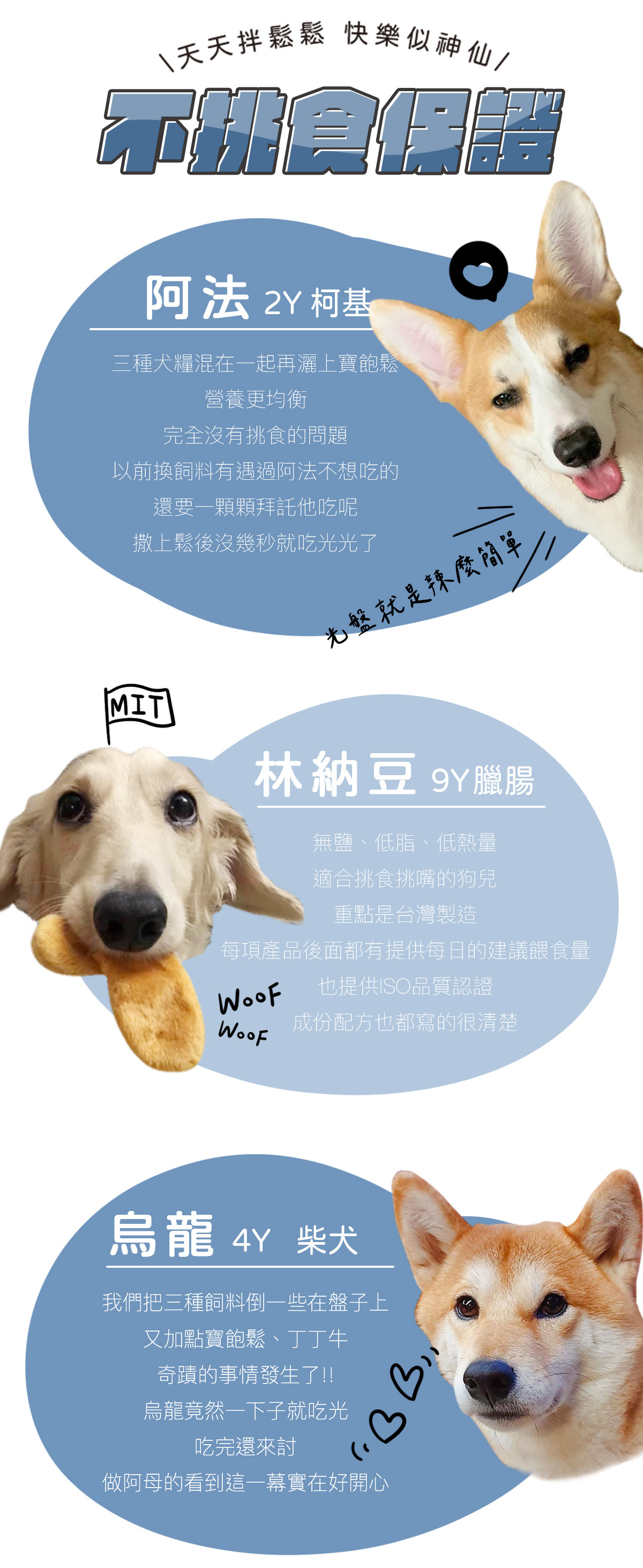 寶飽鬆:新鮮雞肉製成的無鹽雞肉,適合拌在犬糧中給您的挑食犬