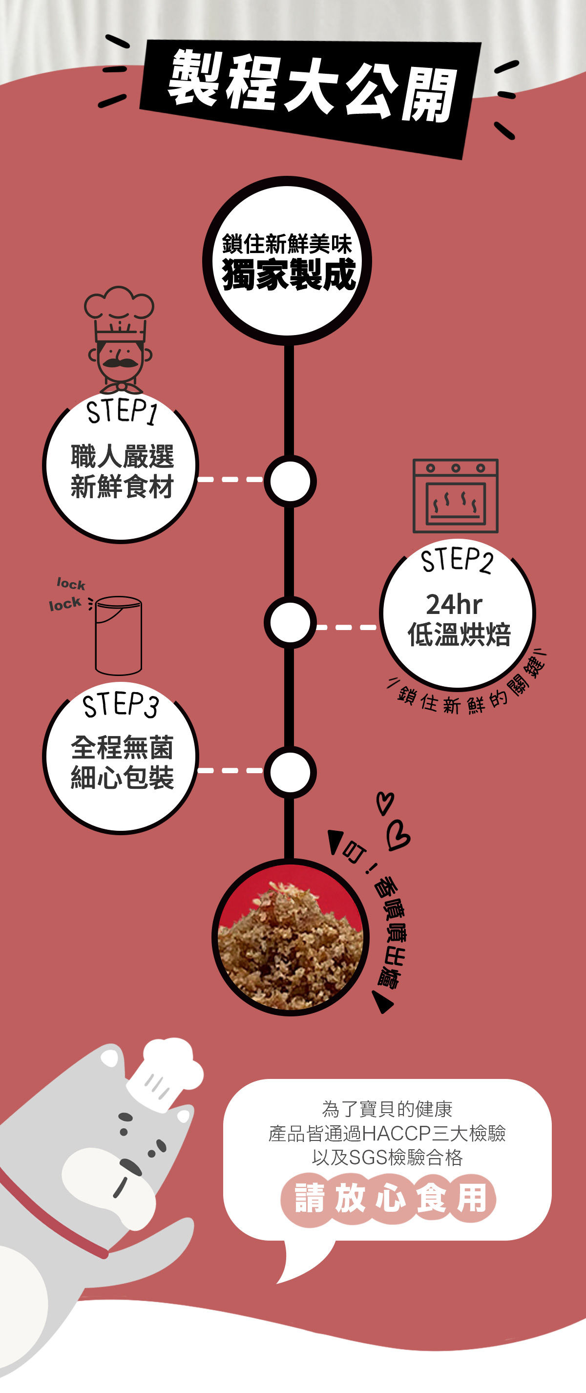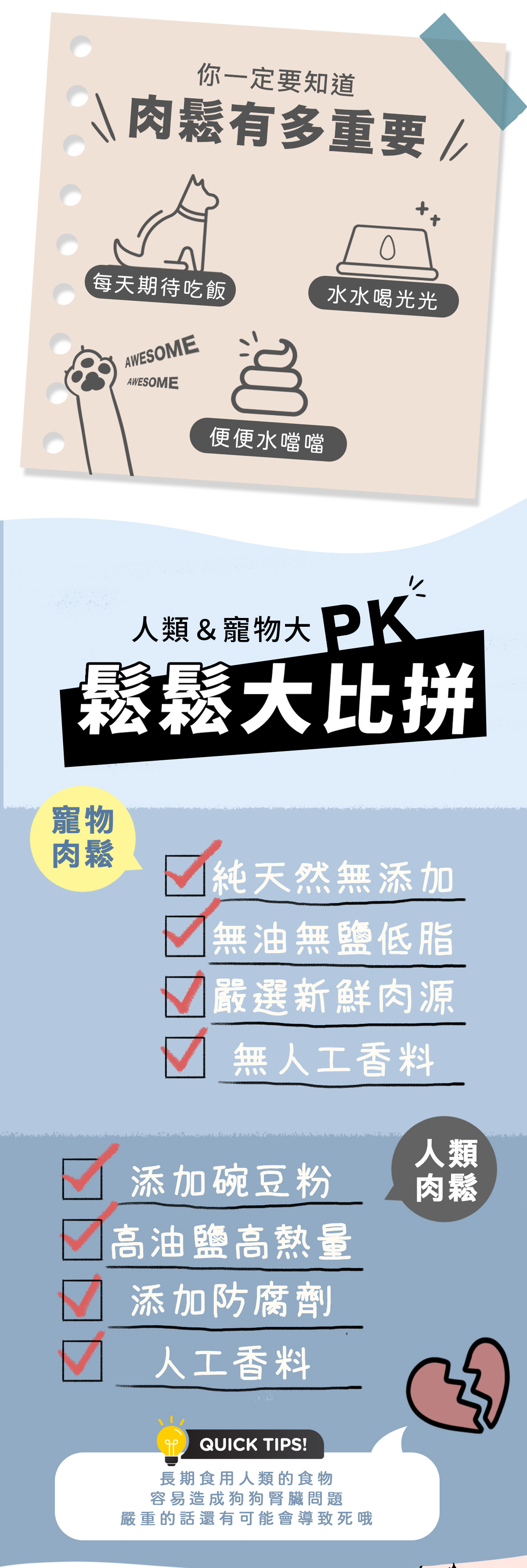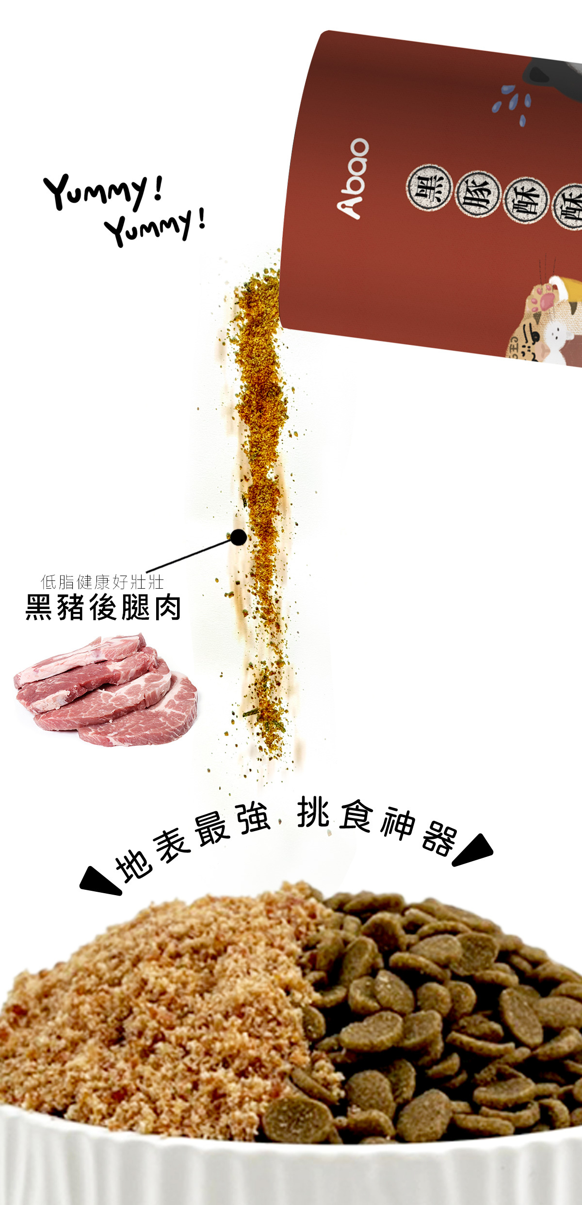 可將肉鬆倒在飼料上拌食,增加適口性。也可以加入鮮食或其它食材上一同食用