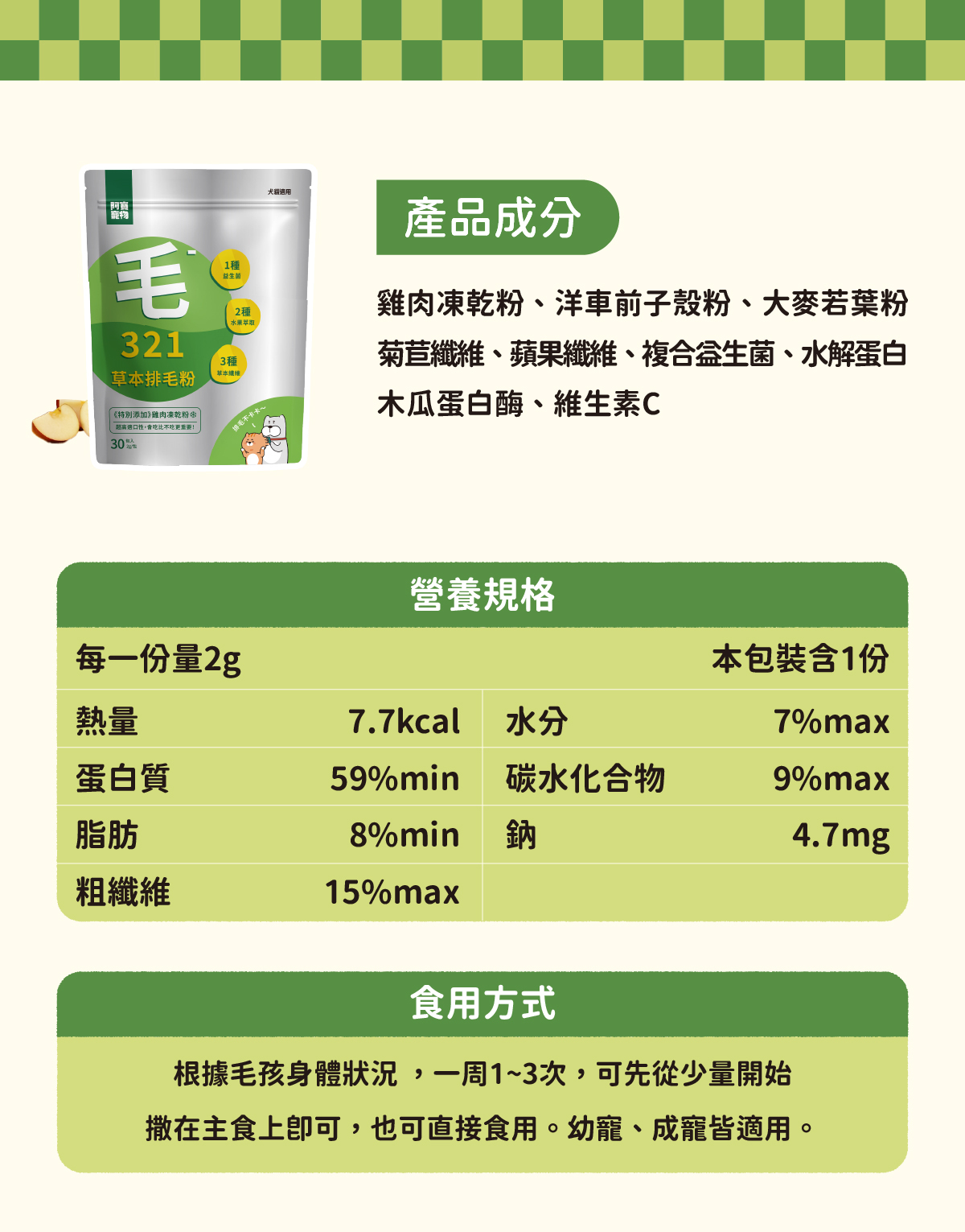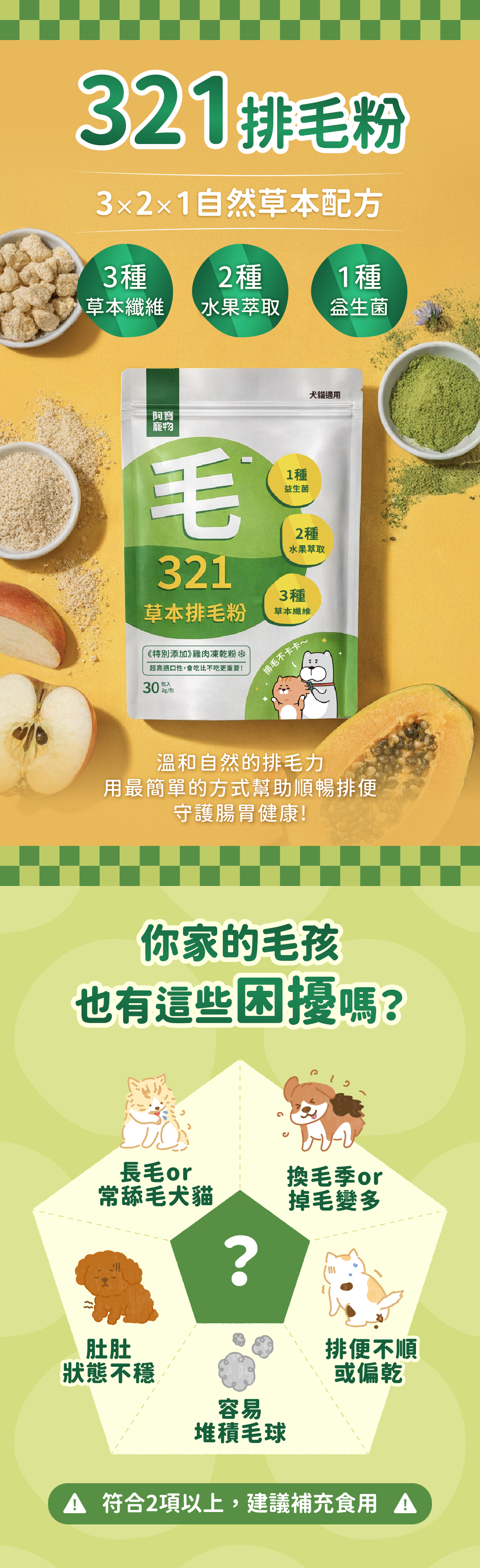 超早鳥優惠56折‼️【寵物排毛保健】321草本排毛粉 (30入/袋)|貓狗適用